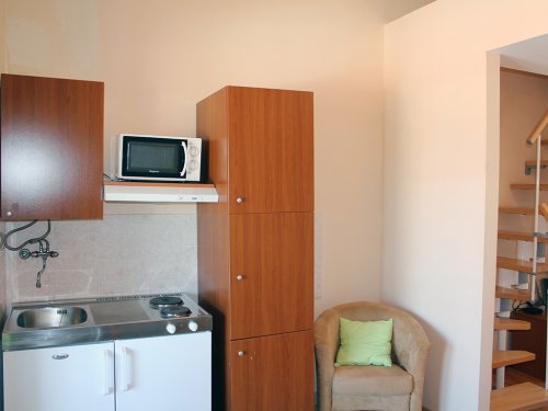 Apartmány mají SAT /TV, wifi, balkon Apartmán typ 1 pro 4–5 osob: cca 42 m2, 1× ložnice s manželským lůžkem, obývací pokoj s rozkládacím dvougaučem, kuchyňským koutem Apartmán typ 2 pro 4–6 osob: cca 50m2: 1× ložnice s manželským lůžkem, obývací pokoj s rozkládacím dvougaučem + 1× dalším gaučem, kuchyňským koutem