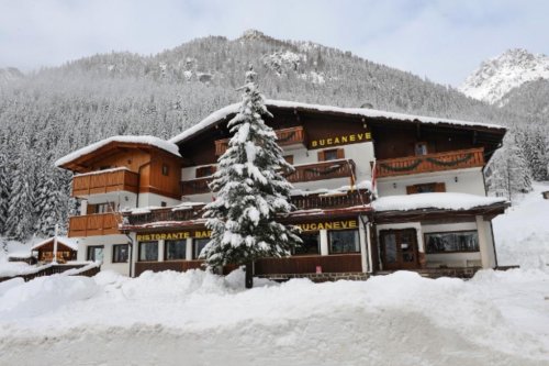 Hotel Bucaneve se nachází v klidné oblasti Fango, na půli cesty mezi Moenou a San Pellegrino. Nejbližší sjezdovky Alpe Lusia a San Pellegrino jsou vzdáleny cca 3 km. K sjezdovkám se můžete svézt skibusem, který zastavuje hned u hotelu a s kartou Guest Card ho máte zdarma. Centrum města s obchody, bary a restauracemi leží ve vzdálenosti cca 5 km. Mezi vybavení hotelu patří recepce, výtah, restaurace, bar, terasa, zahrada, společenská místnost s TV, dětské hřiště, vyhřívaná lyžárna s vyhříváním bot, sauna (za poplatek 10 €/30 min.), WiFi připojení v celém hotelu zdarma, parkoviště u hotelu zdarma (omezená kapacita, nelze rezervovat předem) a garáž s možností parkování za poplatek dle hotelového ceníku. Svým hostům hotel nabízí slevy na zapůjčení lyžařského vybavení. Jsou akceptovány platební karty Visa, MasterCard, EC card/Maestro.