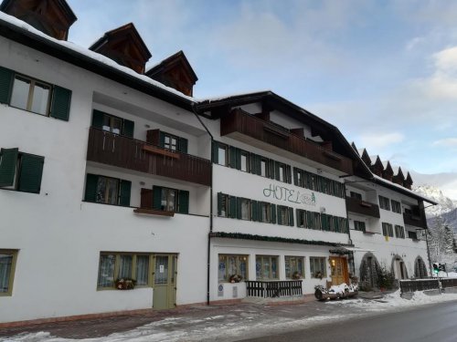 zastávka skibusu u hotelu, 2500 m od sjezdovek Falcade