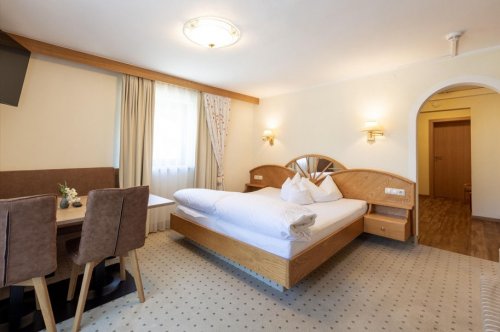 Apartmán studio Typ 1 pro 2 osoby (cca 23 m2) – vedlejší budova, 1 místnost s dvoulůžkem, možnost dětské postýlky nad rámec obsazenosti.