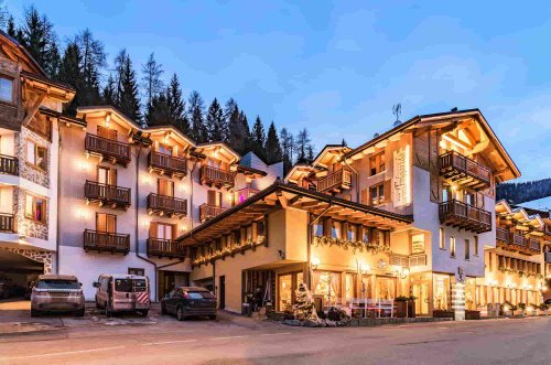 Hotel je situován v srdci Dolomit, coby kamenem dohodil od lyžařských