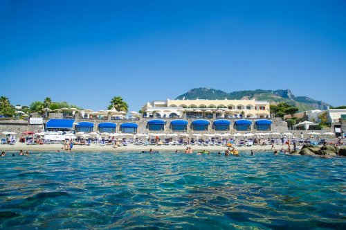 přímo na písečné pláži San Francesco v klidné části letoviska Forio.