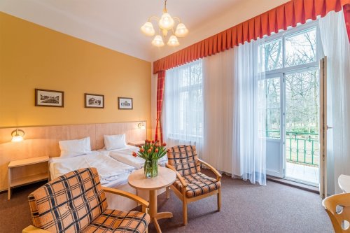 Historický hotel Metrolo 3 s jedinečnou architekturou si oblíbíte nejen pro nezaměnitelný styl interiérů, usměvavý personál a možnost parkování na vlastním hotelovém parkovišti. Skrytým pokladem je jeho poloha – na příjemně klidném místě tak trošku v ústraní, a přitom jen kousíček od centra města, kam vás dovede oblíbená Badsodenská promenáda vedoucí lázeňským parkem. Součástí hotelu je vlastní léčebné oddělení se zkušenými lékaři a dalším odborným personálem, který vám bude neustále po ruce. Probíhá tu většina klasických procedur včetně slatinných zábalů, uhličitých koupelí a plynových injekcí, ale také masáže, parafínové zábaly, oxygenoterapie, magnetoterapie, lymfodrenáže i různé formy fyzioterapie. K vybavení a službám hotelu patří mimo jiné léčebné oddělení, lékař, hotelová zahrada, knihovnička, internetový koutek, výtah, hlídané hotelové parkoviště, denní tisk, půjčovna nordic walking holí, praní a žehlení prádla, nabídka kulturních a výletních programů, možnost zapůjčení DVD přehrávače. Pokoj Standard: 1– a 2– lůžkové pokoje s výhledem do Školní ulice nebo do zahrady. Základní vybavení pokojů: toaleta, sprchový kout, fén, hotelové ručníky a osušky, Wi-Fi připojení za poplatek (bezplatný internet je k dispozici na recepci), LCD TV se satelitními programy, mini lednice, trezor, telefon, župan (za poplatek). Pokoj Komfort: 1– a 2– lůžkový pokoj nabízející výhled do přilehlého lázeňského parku, jehož promenáda vede přímo do centra Františkových Lázní. Základní vybavení pokojů: toaleta, sprchový kout, fén, hotelové ručníky a osušky, Wi-Fi připojení za poplatek (bezplatný internet je k dispozici na recepci), LCD TV se satelitními programy, mini lednice, trezor, telefon, župan (za poplatek).