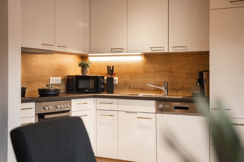 - kuchyňská linka: trouba, myčka nádobí, kávovar, lednice z mrazákem, mikrovlnná trouba, toustovač a rychlovarná konvice