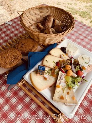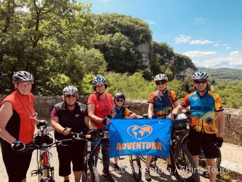 prohlídka jeskyně Lascaux II; na kole údolím posetým