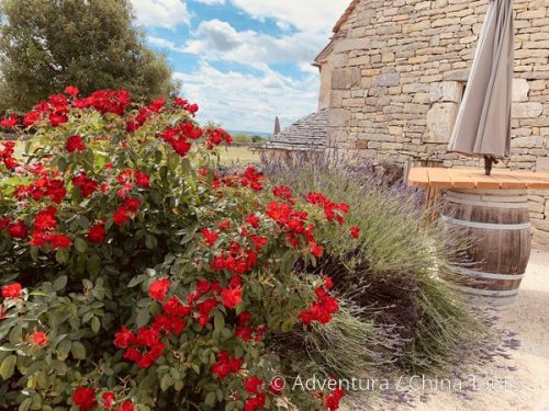 7. denNa kole či autobusem ke kouzelnému zámku Château de Puymartin, kamenné střechy domů v Cabanes-du-Breuil (původní středověké stavby, ve kterých v 15. století přebývali benediktinští mniši ze Sarlatu), středověký hrad Commarque, opevněný kostel v Marquay a přes Sarlat zpět do kempu (38–60 km).