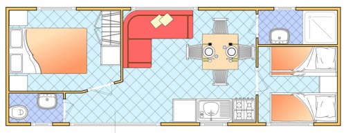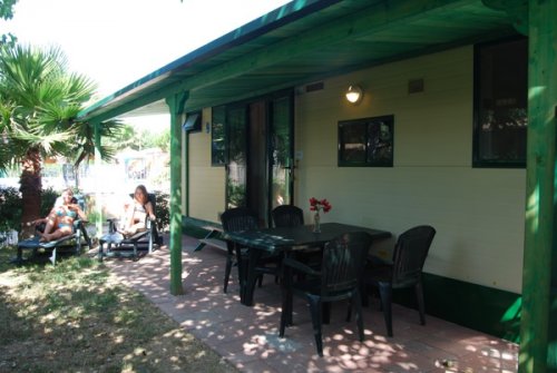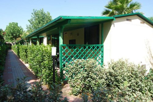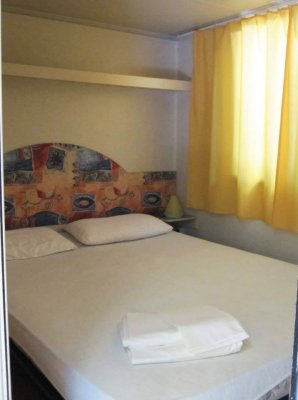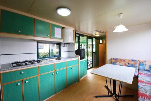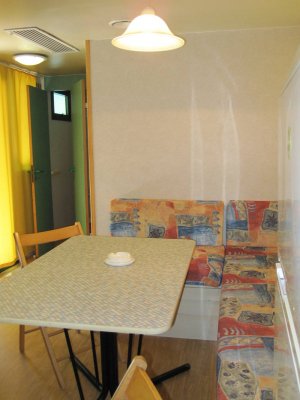 Mobilhomy jsou vybaveny klimatizací, TV, plně vybaveným kuchyňským koutem, koupelna/wc, fén. – APARTMÁN TRILO pro 2–5 osob: třípokojový apartmán, 1× ložnice s manželským lůžkem, 1× ložnice se dvěma samostatnými lůžky + jedním lůžkem formou palandy (dítě max.do 10 let), obývací pokoj s rozkládacím gaučem a kuchyňským koutem, koupelna/wc, terasa se zahradním nábytkem