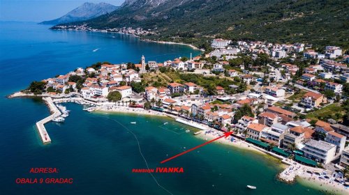 Pension Ivanka se nachází v letovisku Gradac, přímo u pláže. Nabízí hostům pohodlný přístup k oblázkové pláži i do centra letoviska s restauracemi a obchody. WiFi připojení je v pensionu k dispozici zdarma. Parkování je možné na veřejném parkovišti za poplatek cca 8 €/den (omezená kapacita, nelze rezervovat). Ubytování je vybaveno klimatizací. Pension Ivanka je vhodnou volbou pro hosty, kteří hledají příjemné ubytování v blízkosti moře.