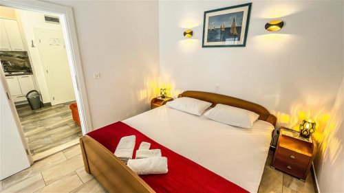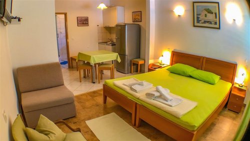Studio se nachází ve 3. patře domu a disponuje vlastním sociálním zařízením se sprchovým koutem, místností s kuchyňským koutem, manželským lůžkem a přistýlkou ve formě rozkládacího lůžka. Dále je vybaveno TV, klimatizací, parkováním v blízkosti ubytování a balkonem. Studio lze obsadit 2–3 osobami.