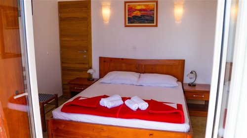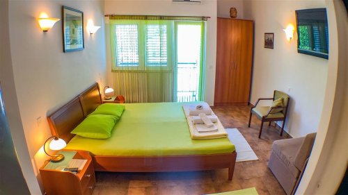 Apartmán se nachází v 1. patře domu a disponuje vlastním sociálním zařízením se sprchovým koutem, dvěma samostatnými ložnicemi s manželským lůžkem a místností s kuchyňským koutem s možností jedné přistýlky ve formě rozkládacího lůžka. Dále je vybaven TV, klimatizací, parkováním v blízkosti ubytování a dvěma balkony. Apartmán lze obsadit 4–5 osobami.