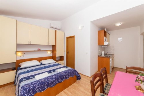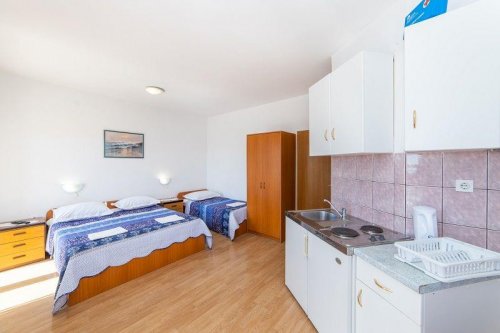 Studia č. 4 a 7 se nachází ve druhém patře domu a disponují vlastním sociálním zařízením se sprchovým koutem, místností s jednoduchou kuchyňkou a manželským lůžkem. Dále jsou vybavena SAT/TV, WiFi připojením, klimatizací (za poplatek cca 5 €/den, platí se na místě) a balkonem. Studio č. 4 je orientováno na mořskou stranu (lze vybrat při rezervaci). Studia lze obsadit 2 osobami.