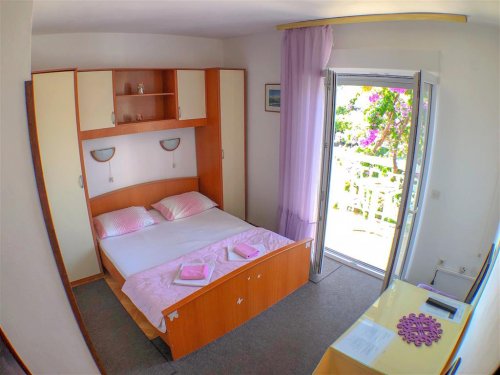 Studio se nachází v prvním patře apartmánového domu a disponuje místností s manželským lůžkem a samostatným lůžkem, vlastním sociálním zařízením a kuchyňkou. Dále je k dispozici SAT/TV, WiFi připojení, klimatizace a balkon. Studio lze obsadit 2–3 osobami.