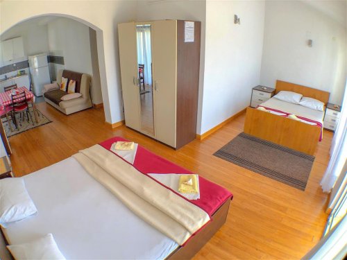 Studio se nachází ve druhém patře apartmánového domu a disponuje dvěma manželskými lůžky, vlastním sociálním zařízením a kuchyňkou. Do studia lze přidat přistýlku vhodnou pro 2 osoby (formou rozkládacího lůžka). Dále je k dispozici SAT/TV, WiFi připojení, klimatizace a terasa. Studio lze obsadit 4–6 osobami.