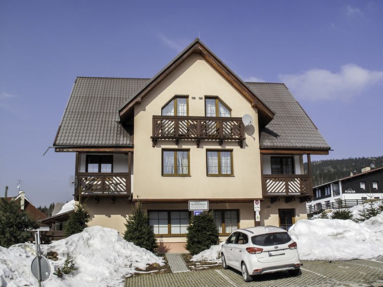 Komfortní bytový dům 3-podlažní. 12 byty v domě. Ve čtvrti 300 m od centra Harrachov, 12 km od centra Rokytnice, 16 km od centra Jablonec, 500 m od sjezdovek. Společné: pozemek, parkovací místo na pozemku. Supermarket 300 m, nádraží „Harrachov-Mytini“ 3 km, krytý bazén 1 km. Vlek, lyžařské sjezdovky 500 m, zastávka ski-busu 150 m, lyžařská škola 400 m, běžkařské stopy 500 m. Snadno dostupné vyhlášené lyžařské oblasti: Čertova hora, Rýžoviště 1.5 km. Turistické oblasti Mumlavský vodopád 2 km.