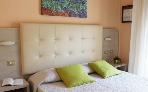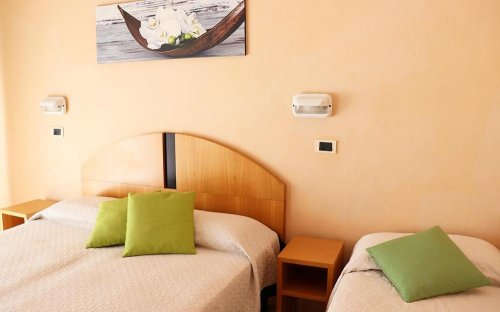 hlavní budova (pokoje Comfort R2B, R3B a R4B viz ceník) a dependance (pokoje Easy R2, R3 a R4 levnější cena než comfort, na vyžádání). Pokoje s koupelnou a WC, fénem, TV, klimatizace zdarma, trezor, wifi, balkon, postranní výhled na moře, dvoulůžko a přistýlka/ gauč nebo palanda.