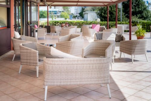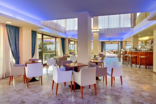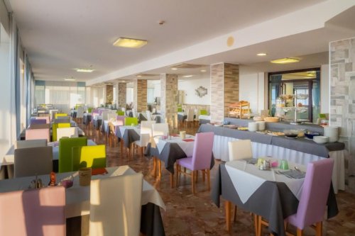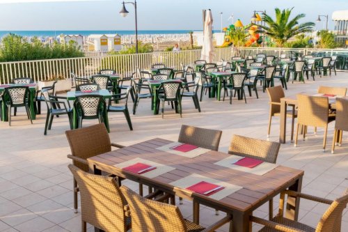 recepce, restaurace, bar, výtah, sluneční terasa, TV místnost, wi-fi ve společných prostorách zdarma, limitované parkoviště za poplatek, půjčování kol za poplatek, privátní pláž s plážovým servisem (cca 22.05.-15.09., 1 slunečník a 2 lehátka na pokoj).