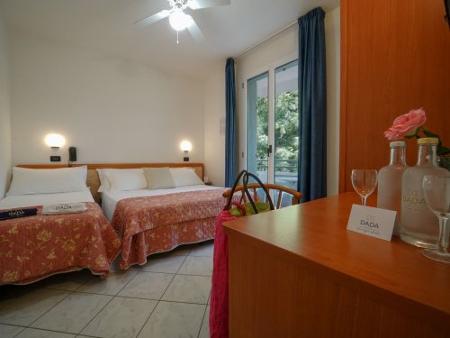 2 budovy, pokoje pro 2 dospělé a 1–2 děti nebi 3 dospělé a 1 dítě, koupelna a WC, fén, TV, trezor, wifi, balkon, klimatizace zdarma, dvoulůžko a přistýlka (gauč, křeslo) nebo palanda.