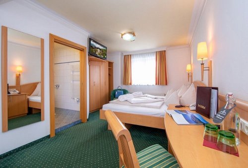 Dvoulůžkové pokoje Areit nebo comfort Schmitten (cca 16–18 m2) bez možnosti přistýlky, dětská postýlka na vyžádání.