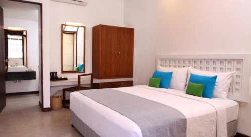 HOTEL JETWING BLUE 5:Je situován u pláže „Ethukala“ v palmovém háji, přibližně 3 km od města Negombo a 12 km od mezinárodního letiště. Hotel je součástí prestižního hotelového řetězce JETWING HOTELS. Má 112 klimatizovaných pokojů (De Luxe, Family rooms, Super De Luxe, Suites) s vlastním sociálním zařízením, vysoušečem vlasů, trezorem, satelitní LED televizí, telefonem, minibarem a zařízením na přípravu čaje a kávy. Každý pokoj disponuje terasou či balkónem s výhledem na oceán. Elektrické nápětí v hotelu – 220 V. Hotel má vlastní lázně, vířivky a nabízí masážní terapie, včetně ájurvédské masáže. V resortu se nachází 2 bazény, dětské brouzdaliště, sauna, fitness centrum, business centrum, tenisové kurty, směnárna, prádelna, obchůdky se suvenýry, služba hlídání dětí. Bezdrátové připojení na internet je v celém hotelu zdarma. Ke stravování a občerstvení slouží 2 restaurace – „The Kitchen“ a „Centre Point Grill & Bar“ a 2 bary – „The Float“ a „The Out Trigger“. Občerstvení lze využít jak u bazénu, tak na pláži. U hotelu lze zapůjčit automobil pro výlety do blízkého okolí.