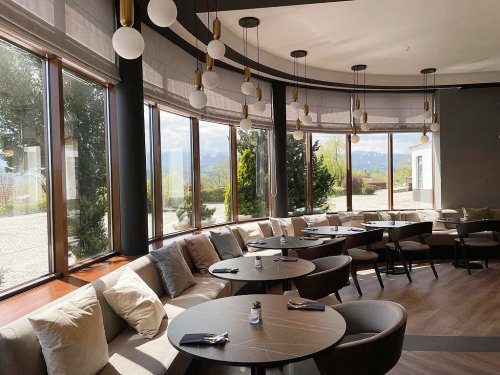 recepce 24/7, lobby s krbem, restaurace / bar, 2 x seminární místnost
