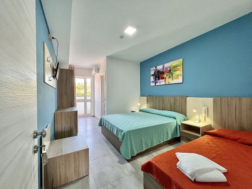 Recepce, výtah, Wi-Fi, restaurace, venkovní bazén, sluneční terasa na střeše hotelu s výhledem na moře a městečko, venkovní dětstké hřiště, půjčovna kol a parkoviště s omezeným počtem míst