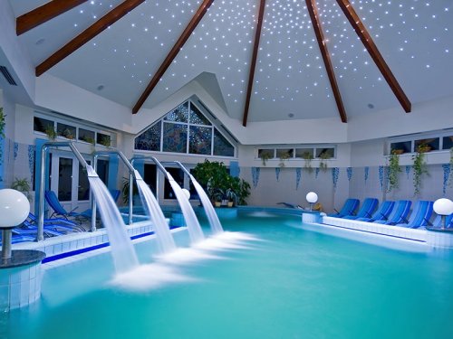 K vybavení hotelu patří restaurace, bar, vinný sklep, výtah, termální koupele, Wellness centrum (vnitřní a venkovní bazén s termální vodou 35–37°C, chrliče vody, vodní šachy, whirlpool, finská sauna, infrakabina, solárium, wellness procedury, bohatý výběr masáží vč. thajských), salon krásy (manikúra, pedikúra, kosmetika), fitness, jóga, pilates, půjčovna kol (vč. dětských), dětská herna a hřiště, hřiště na fotbal a volejbal, gril. Možnost jízdy koňským spřežením, motorové čluny, tenisový kurt a další.