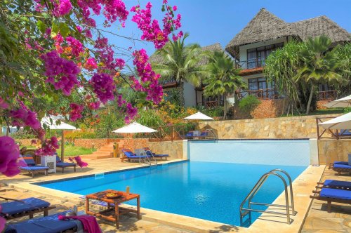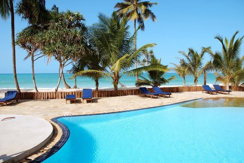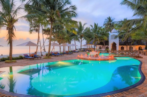 písčité pláži Kiwengwa. Areál sousedí s hotelovým resortem Bluebay,