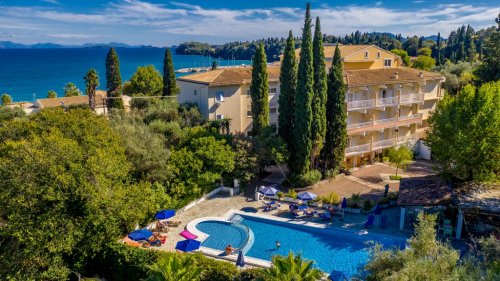 Oblíbený menší plážový hotel vyznačující se rodinným charakterem najdete v klidné části na okraji letoviska Ipsos a to přímo u nádherné oblázkově-písečné pláže (přístup přes pobřežní místní komunikaci). Samotné centrum letoviska je vzdáleno 400 m a nabídne Vám veškerý turistický servis. Na jeho promenádě bude moci posedět v kavárnách a tradičních tavernách, nechybí nákupní možnosti, půjčovny vozidel aj. Z centra letoviska se lze snadno dopravovat do dalších zajímavých míst ostrova a to díky místní, vcelku dobře frekventované, autobusové dopravě. Mezinárodní letiště je vzdáleno 15 km (doba transferu cca 25 min).