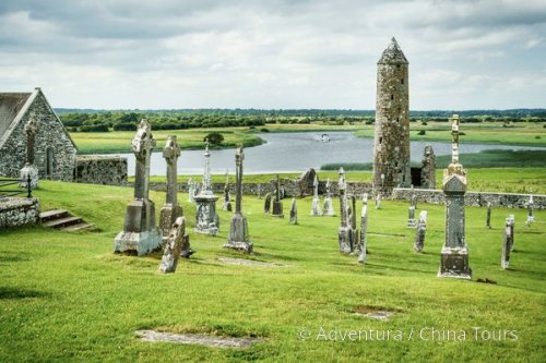5. denCliffs of Moher – západní pobřeží s monumentálními útesy, zvláštní kamenná měsíční krajina Burren; megalitické památky, zříceniny hradů a dolmeny v hrabství Clare, nejdůležitější irský klášterní areál Clonmacnoise s typickými kulatými věžemi a keltskými kříži; přejezd do Severního Irska.