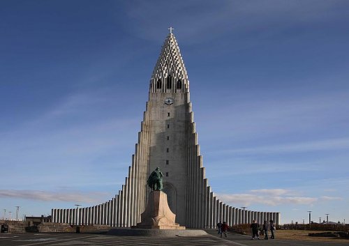 kostela Hallgrímskirkja jehož fasáda připomíná varhany.