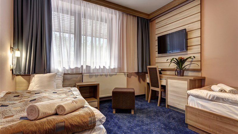 RELAX POBYT na 3 noci(4 dny / 3 noci, nástupní den libovolný) Platí v termínech 2.1. – 2.4., 7.4. – 1.7. a 1.9.- 22.12.2026 – 3× ubytování s polopenzí (snídaně i večeře formou bufetu) – 3× procedura dle nabídky hotelu (pro plně platící osobu) BONUSY ZDARMA: – denně neomezený vstup do plaveckého bazénu – denně vstup do Wellness centra a fitness – Wi-Fi – parkování – sleva 30% na vybrané procedury a masáže – sleva 30% na bowling