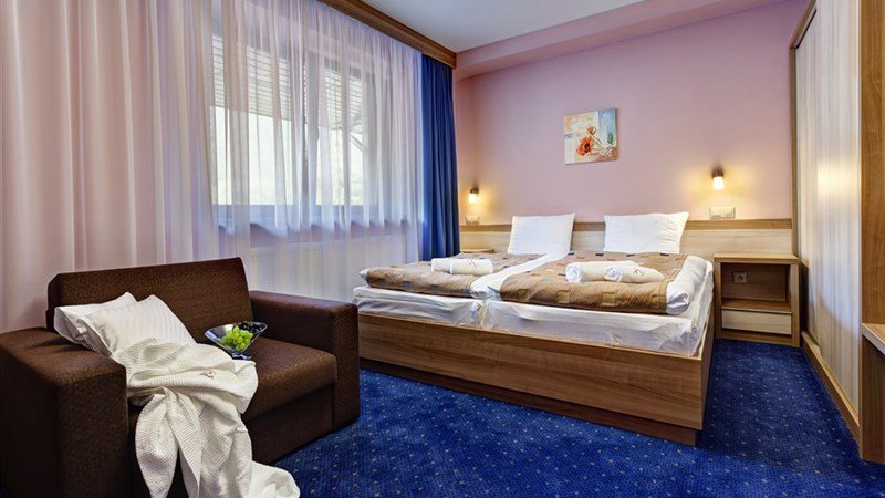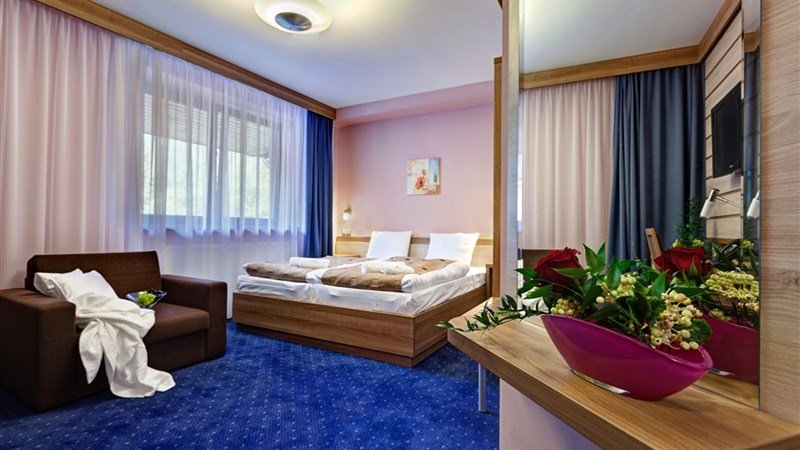 RELAX POBYT na 4 noci(5 dní / 4 noci, nástupní den libovolný) Platí v termínech 2.1. – 2.4., 7.4. – 1.7. a 1.9.- 22.12.2026 – 4× ubytování s polopenzí (snídaně i večeře formou bufetu) – 4× procedura dle nabídky hotelu (pro plně platící osobu) BONUSY ZDARMA: – denně neomezený vstup do plaveckého bazénu – denně vstup do Wellness centra a fitness – Wi-Fi – parkování – sleva 30% na vybrané procedury a masáže – sleva 30% na bowling