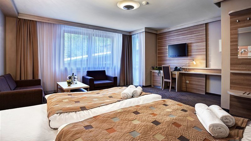 RELAX POBYT na 2 noci(3 dny / 2 noci, nástupní den libovolný) Platí v termínech 2.1. – 2.4., 7.4. – 1.7. a 1.9.- 22.12.2026 – 2× ubytování s polopenzí (snídaně i večeře formou bufetu) – 2× procedura dle nabídky hotelu (pro plně platící osobu) BONUSY ZDARMA: – denně neomezený vstup do plaveckého bazénu – denně vstup do Wellness centra a fitness – Wi-Fi – parkování – sleva 30% na vybrané procedury a masáže – sleva 30% na bowling