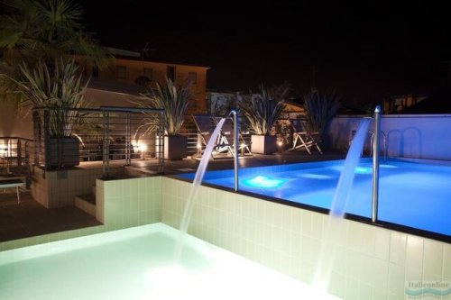restaurace a bar, bazén a sluneční terasa na střeše a parkoviště dle