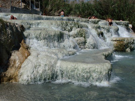 4. den: BOLSENA, město na břehu největšího jezera vulkanického původu v Evropě, středověké centrum, hrad, katedrála Santa Cristina a výhledy na stejnojmenné jezero, přejezd k přírodnímu divu kraje Saturnia, přírodní termální lázně, koupání v travertinových kaskádách s jezírky se sirnou vodou připomínajícími turecké Pamukkale, cesta do oblasti unikátních cest vytesaných Etrusky ve skalách (vie cave) a výborných vín, turistika romantickou krajinou s úžasnými vyhlídkami na město na vysoké skále, PITIGLIANO, město na skalním výběžku, středověké uličky, bývalé židovské ghetto (muzeum), akvadukt, palác Orsiniů, vyhlídky do kaňonu, podvečerní atmosféra, ochutnávka vín a místních specialit
