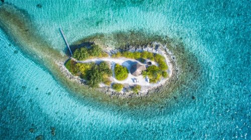 soukromém ostrově s dlouhými bílými plážemi, azurovou lagunou a bohatým