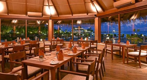 Indickým oceánem. Tento oblíbený hotel na Maledivách se nachází na