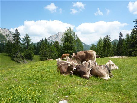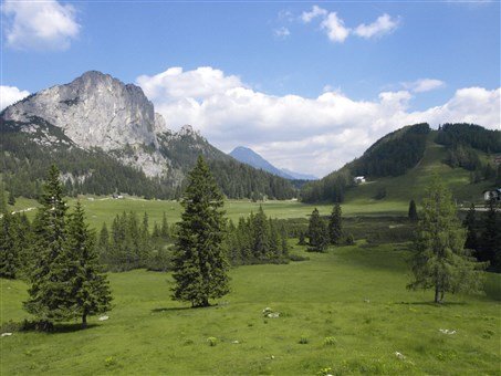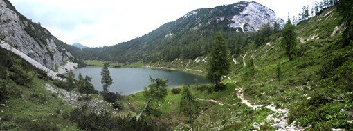2. den: celodenní pohoda a turistika přímo od hotelu s různými variantami náročností na Tauplitzalm, alpské náhorní plošině se 6 jezery (12 tras od lehké skoro po rovině až náročné do 2 200 m n.m. v kombinaci s vláčkem taženým traktorem – při příznivém počasí, s průvodcem), přírodní zahradou alpinek a orchidejí na náhorní plošině 6 jezer; horská idyla, ráj pro botaniky i fotografy(azalky, hořce a první alpinky), variantně možnost celodenní turistiky na planiny Totes Gebirge, večerní pohoda v horách