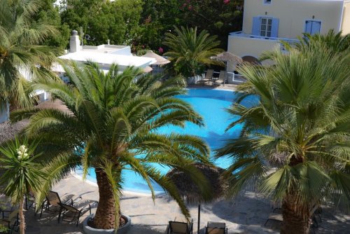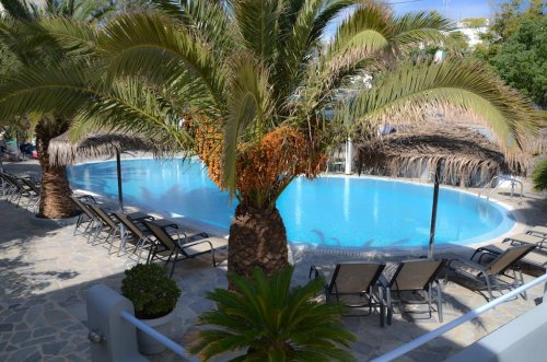 Tradiční kykládská architektura a převládající bílá a modrá barva, stejně jako všudypřítomná zeleň a pestrobarevné kvetinové zahrady, budou tím, co Vás zaujme na první pohled. Místo působí skutečně jako oáza. Uvítá Vás vstupní hala s recepcí a lobby barem. K dispozici Vám snídaňová místnost, společenská místnost, WiFi ve společných prostorách zdarma, internetový koutek, obchod se suvenýry, v zahradě bazén a pool bar s venkovním příjemným posezením, sluneční terasa s lehátky a slunečníky zdarma (na pláži plážový servis za poplatek). U recepce lze jsednat pornájem vozidel a jízdních kol nebo další služby na míru. Na pláži budete moci využít služeb střediska vodních sportů, zahrát si volejbal aj.