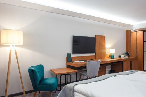 TV, wi-fi připojení k internetu, fén, župany a pantofle do wellness,