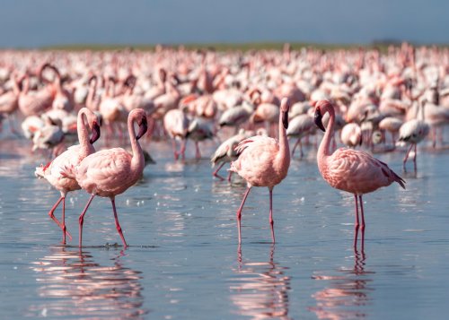 březích jezera uvidíme hejna růžových plameňáků i stovky pelikánů.