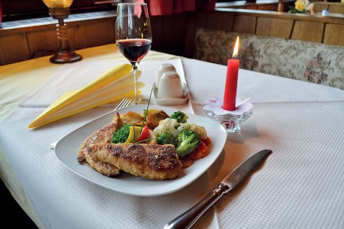 s výběrem hlavního jídla s přílohou, nápoje za poplatek