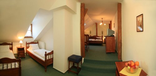 zařízení; některé pokoje jsou mezonetové; možná i varianta 2 navzájem