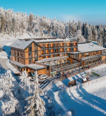 - v roce 2023 nově postavený hotel, poskytuje moderní komfort a bezkonkurenční polohu na úpatí lanovky