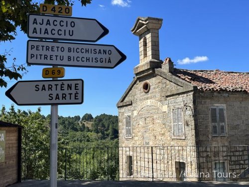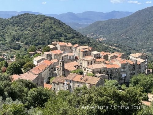 8. denAutobusem k horské Zonze, odtud na kole přes Levii (archeologické muzeum s nejstarší korsickou kostrou ženy – Dámou z Bonifacia), olivové městečko Sainte-Lucie-de-Tallano a vinice Fiumicicoli do nejkorsičtějšího z korsických měst Sartène (43 km); možnost zajížďky k pravěké pevnosti Cucuruzzu-Capula (+7 km) nebo prodloužení k menhirovému poli Cauria (+26 km).