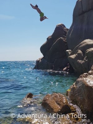 3. denAutobusem k přehradě Ospedale, skalní útvary a vodopád Piscia di Gallo, sjezd na kole až k moři (35 km) s koupáním v tůňkách Lataricciu; možnost zajížďky na pláž Saint-Cyprien (+9 km), alternativně horská etapa přes Zonzu a Levii (75 km).
