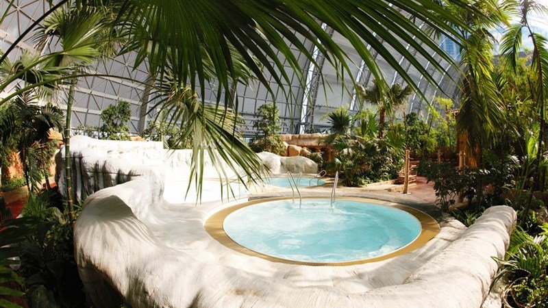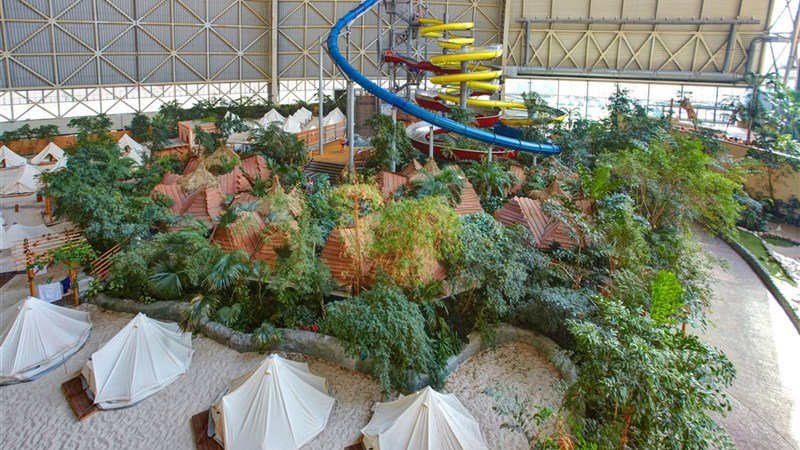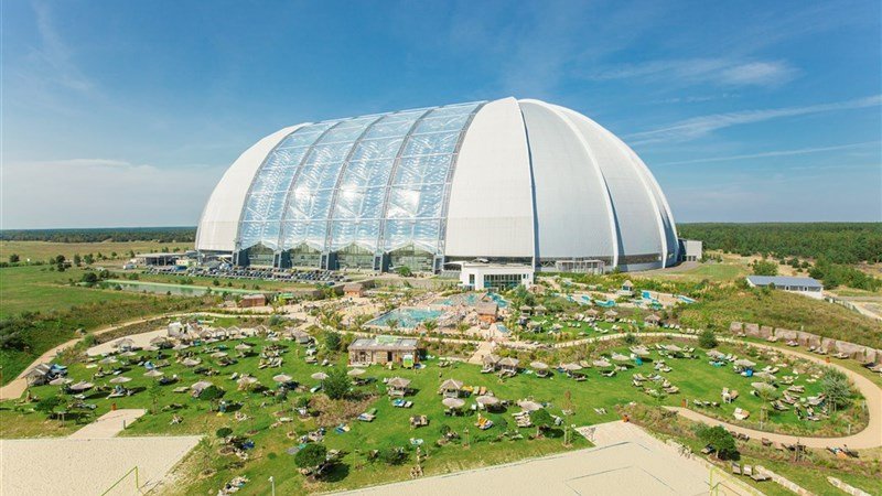 Zhruba 60 km jižně od Berlína (kousek od dálnice, cca 290 km od Prahy), v oblíbeném Spreewaldu, se nachází obrovská hala, která je 360 metrů dlouhá, 210 metrů široká a 107 metrů vysoká. Více než 100 000 m vnitřních a venkovních dobrodružných prostor. Tropical Islands „Tropický ostrov“ byl otevřen v roce 2004. Průměrná teplota vzduchu se tady pohybuje okolo 26 C. Exotický svět je otevřen po celý rok nonstop s výjimkou Štědrého dne 24. prosince, saunový svět je otevřen denně od 9:00 do 24:00 hodin. V hale jsou živé tropické rostliny a zvířata.