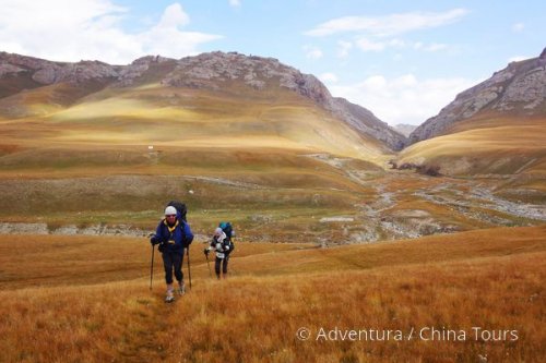 9.–10. denTreking centrálním Ťan-šanem – první den ze stepí kolem divoké řeky Sarydžaz podél řeky Tjuz (21 km/ ↑ 450 m/ 7 h). Druhý den překonáme sedlo Tjuz (4001 m) s bočním vrcholem Vit (4215 m) do hlubokého údolí řeky Inylček (2880 m) (11 km/ ↑ 830 m/ ↓ 1340 m/ 9,5 h).