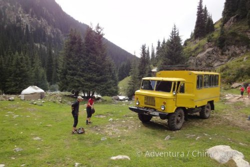 15. denPřejezd terénním autem do Karakolu přes sedlo Čonašu (3822 m).