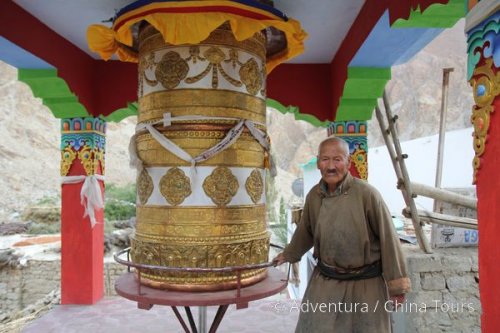 8. denPokračujeme vysokohorskou krajinou přes tři sedla nad 3700 m; cestou návštěva významného kláštera v Likkiru (3740 m) založeného roku 1065, který obývá na sto mnichů; obrovská socha sedícího Buddhy shlíží dolů do údolí; nocleh v zelené oáze vesničky Ney (44 km/ ↑ 900 m/ šotolina, asfalt).